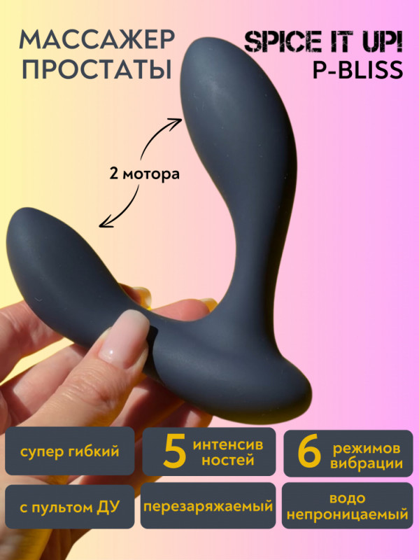 Восхитительная новинка в мире мужских девайсов - супергибкий, эргономичный, анатомичный массажер простаты "Spice It Up P-Bliss" с двумя моторами и мегамощной вибрацией!