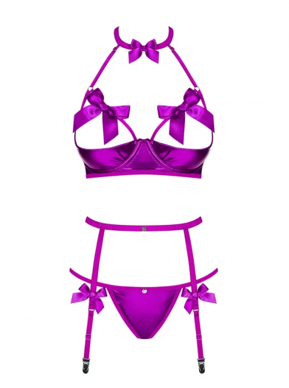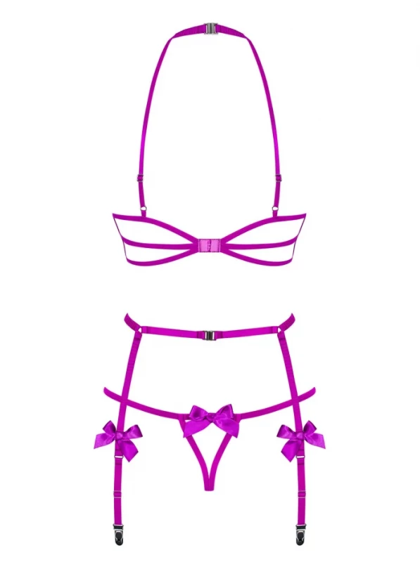 Комплект с открытым бюстом "Obsessive Delishya" фуксия, S/M