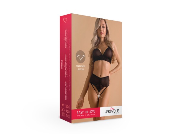Трусики открытые с жемчужной нитью "Le Frivole" черные, S/M